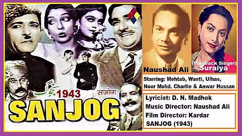 Lyrics and video of songs from Movie / Album : Sanjog (1943); Music by: Naushad Ali; Singer(s): Suraiya, Noor Mohamaad Charlie, Shyam Kumar, Hamida Bano ...Hindi Film Songs - Sanjog (1943) | MySwar