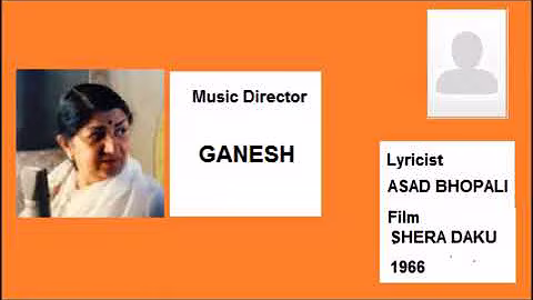Lyrics and video of songs from Movie / Album : Shera Daku (1966); Music by: Ganesh; Singer(s): Asha Bhosle, Suman Kalyanpur, Usha Mangeshkar, | Song Heading | Singer(s) | Music Director | Lyricist | Movie / Album | Actor(s) |
