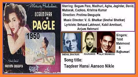 The film was made by Taj mahal pictures.It's all 11 songs were written by Munshi Dil Lucknowi and the film was directed by the Lyricist himself. Actually, " Munshi " means a Clerk, a writer, a literary assistant or a Language Teacher. How this Munshi directed the movie is a wonder. But then in the Hindi film industry, you find many such odd, unimaginable things. This was not his first directorial venture. He had already tried his hand at film-"Abla ki Shakti'-1940 and after this film, he again directed a film "Do Bhai"-1954. As a Lyricst, he write 126 songs in 16 film which included films like Iqrar-42,Naqgad narayan-43 ( a remake of Marathi film " पैसा बोलतो आहे''), Sohni Mahiwal-46 and Laila-54. After this he migrated to Pakistan.