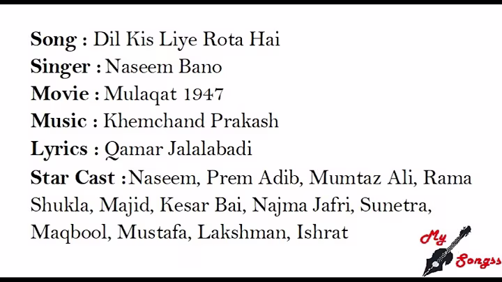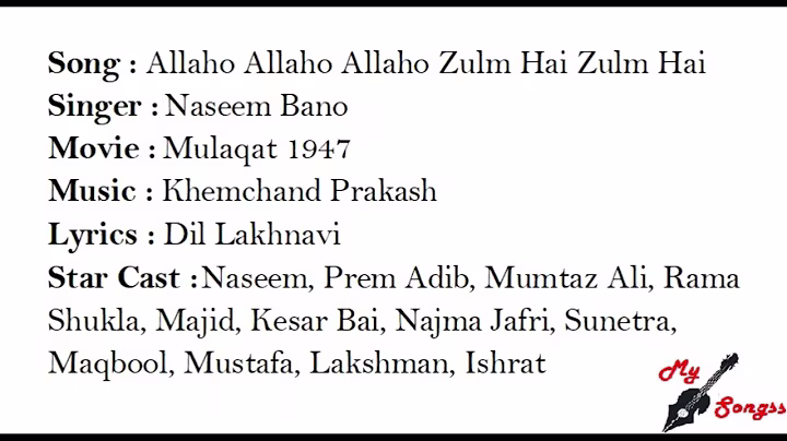 Mulaqat : Lyrics and video of Songs from the Movie Mulaqat (1947)