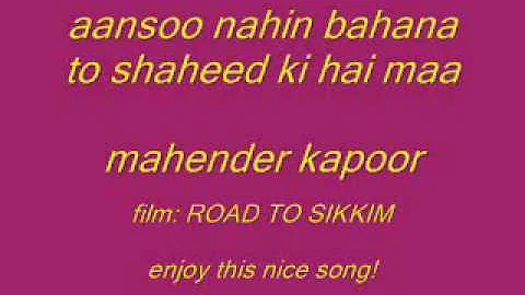 Lyrics of Aansu Nahi Bahana Tu Shahid Ki Hai Maa - आँसू नहीं बहाना तू शहीद की है माँ