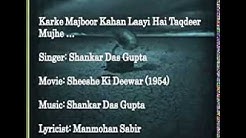Lyrics and video of songs from Movie / Album : Sheeshe Ki Deewar (1954); Music by: Shankar Dasgupta; Singer(s): Shamshad Begum, Geeta Dutt, Yashodhara, ...